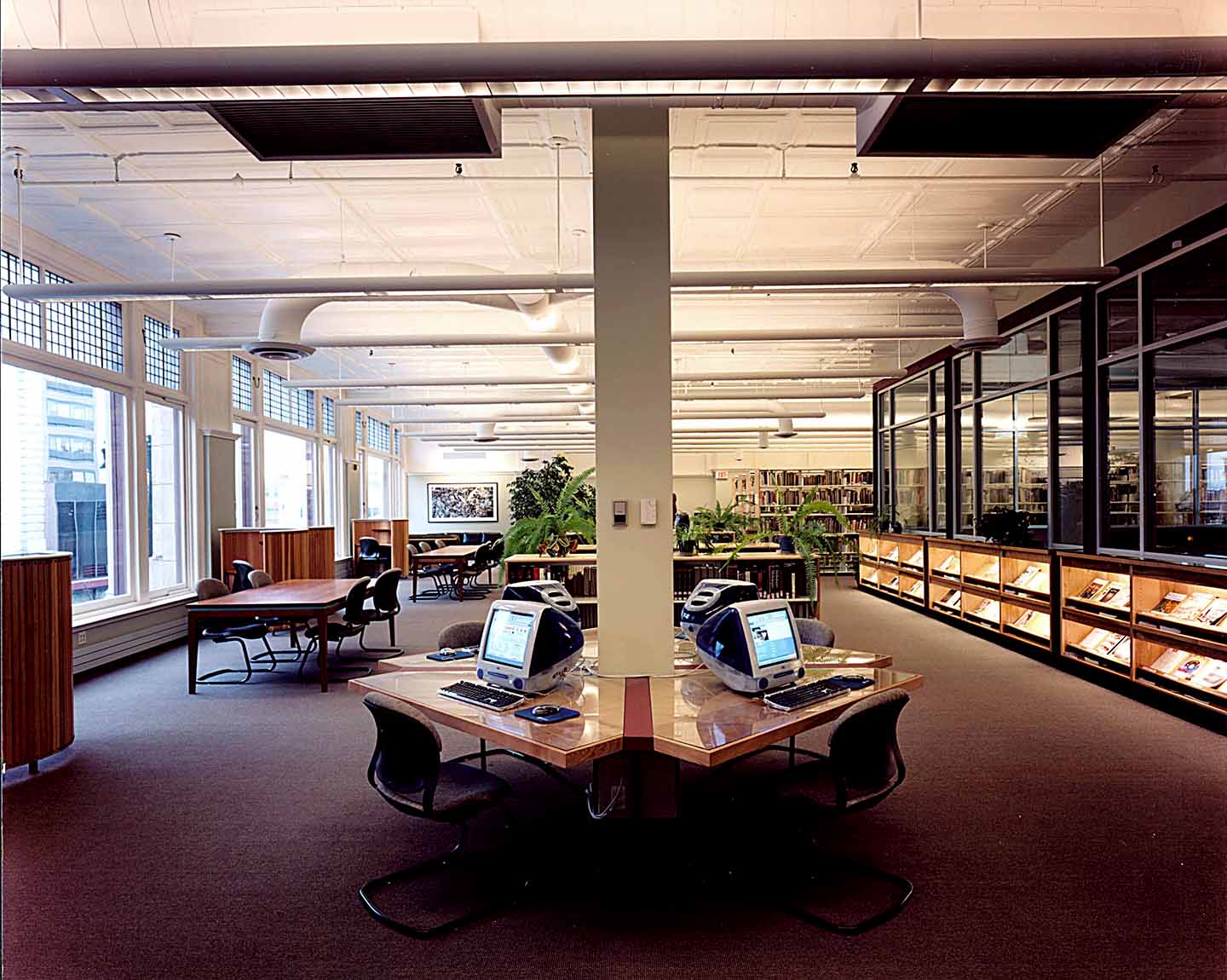 The purchase of the former Porteous, Mitchell and Braun department store building on Congress St. in Portland allowed the Maine College of Art to consolidate and unify its studio majors, library and administrative office into one building. The vision of the College provided students and faculty an environment of open sharing, collaboration and expression of art and design. This allowed the individual arts programs to be inspired by the larger arts community. The ICA gallery and the library allow the College to reach out to a broader network of artisans.